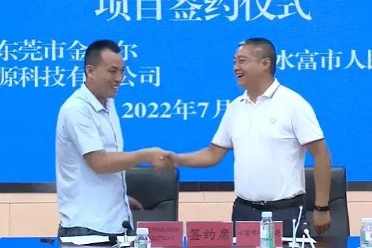 儀式上,水富市政府副市長歐錫海與東莞市金泰爾能源科技有限公司董事長李剛德簽署了項目投資協議。