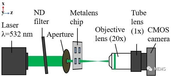圖4 超構透鏡的焦點觀測的設置示意圖