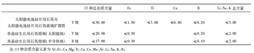 太陽能電池硅片用石英舟、石英玻璃擴散管雜質含量要求