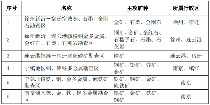 在蘇魯造山帶的新沂-東海-贛榆地區(qū)、郯廬斷裂帶江蘇段及蘇北盆地等劃定7個(gè)重點(diǎn)調(diào)查評價(jià)區(qū),以頁巖氣、鈦礦、金、晶質(zhì)石墨等國家戰(zhàn)略性礦產(chǎn)為重點(diǎn),兼顧油頁巖、地?zé)幔ǜ蔁釒r)、石英巖、金剛石等礦產(chǎn),積極爭取中央財(cái)政資金,加大地方財(cái)政投入開展調(diào)查評價(jià)。