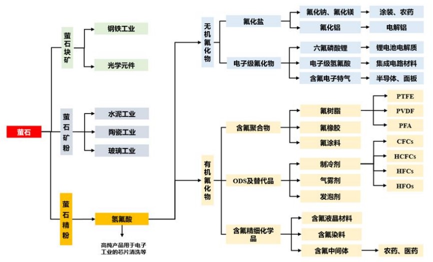 中國粉體網訊 螢石,又稱氟石,是氟化鈣的結晶體和化學氟元素最主要的來源,是氟化工產業鏈的起點。作為現代工業的重要礦物原料,其主要應用于新能源、新材料等戰略性新興產業及國防、軍事、核工業等領域,也是傳統的化工、冶金、建材、光學等行業的重要原材料,具有不可替代的戰略地位。