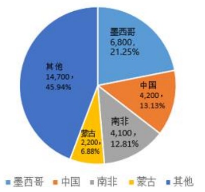 根據2022年美國地質調查局公布的世界螢石儲量數據,2021年底世界螢石總儲量為3.2億噸氟化鈣,主要分布在墨西哥、中國、南非、蒙古等,而美國、歐盟、日本、韓國和印度幾乎少有螢石資源儲量,形成結構性稀缺。