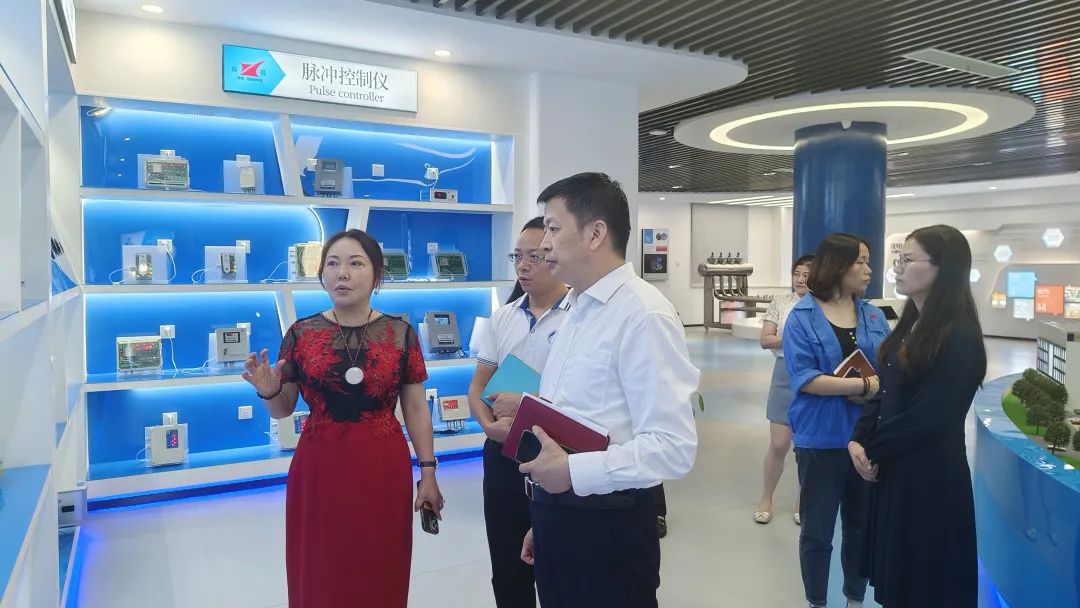 協昌環保CTO兼智慧除塵事業部總經理周育國,帶領蔣衛東副局長一行參觀展廳,并介紹了協昌的產品以及智慧除塵整體解決方案。