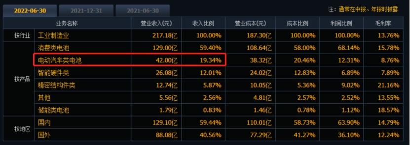 公開資料顯示,2022年上半年,欣旺達動力電池實現收入42億元,同比增長 631.92%。業務收入占比迅速提升,從2020年的1.44%提升至2022H1的19.34%,逐漸成為公司業績的主要增長點。
