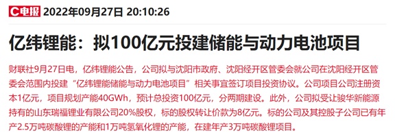 中國粉體網訊 總市值超1700億元的億緯鋰能晚間公告,公司擬與沈陽市政府、沈陽經開區(qū)管委會就公司在沈陽經開區(qū)管委會范圍內投建“億緯鋰能儲能與動力電池項目”相關事宜簽訂項目投資協(xié)議。公司項目公司注冊資本1億元,項目規(guī)劃產能40GWh,預計總投資100億元,分兩期建設。