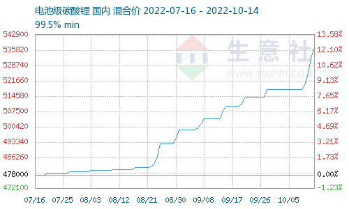 而需求方面,下游庫存消耗及正常采購需求不減,隨著假期的結束,下游終端市場開工率提升,市場采購需求不斷增加表現積極。而當前正值金九銀十新能源汽車傳統銷售旺季,能源汽車生產不斷加大,因此對電池原材料需求上漲,價格更是一漲再漲。