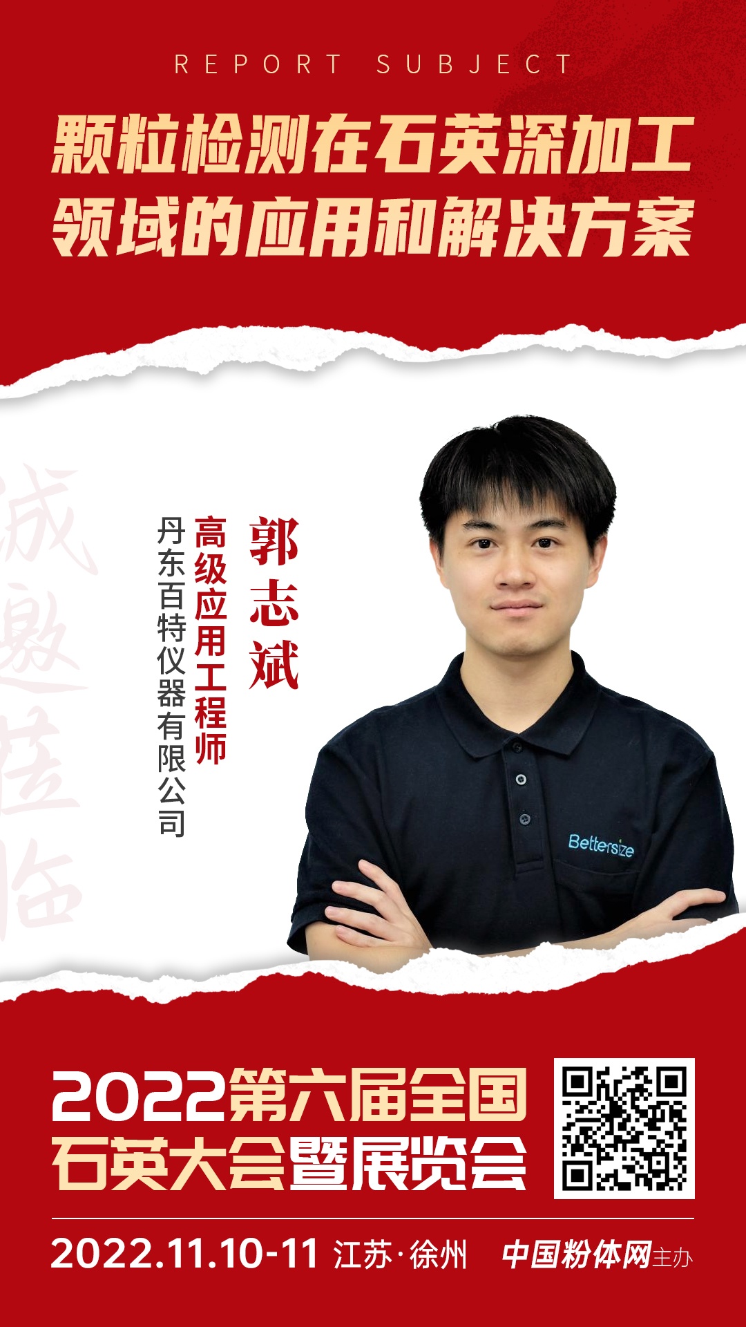 2022年11月10日至11日,中國粉體網將在江蘇徐州舉辦“2022第六屆全國石英大會暨展覽會”。來自丹東百特儀器有限公司的高級應用工程師郭志斌將帶來題為《顆粒檢測在石英深加工領域的應用和解決方案》的報告。
