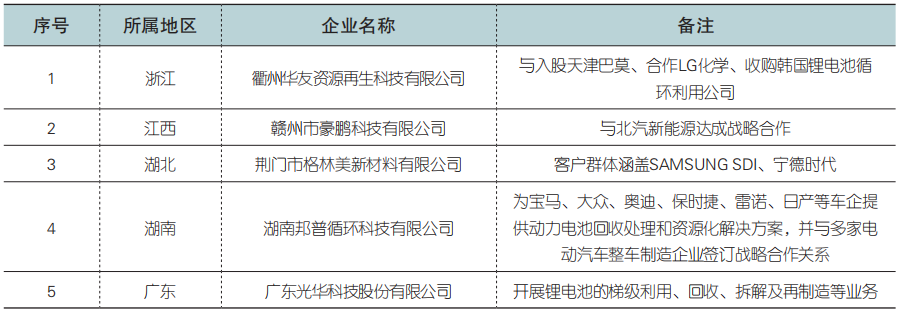 第一批符合新能源汽車廢舊動(dòng)力蓄電池綜合利用行業(yè)規(guī)范條件企業(yè)名單(來源:梁展星等,《廢舊動(dòng)力電池回收利用技術(shù)與政策分析》)