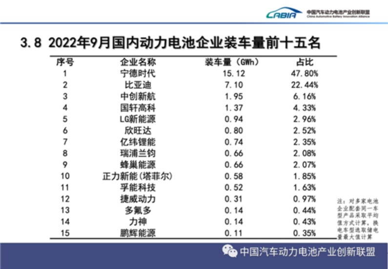 日前,9月份的國內動力電池企業裝車量TOP15榜單,正式出爐。