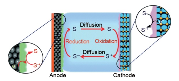 氧化還原穿梭劑過充保護機理示意圖(來源:歐宇等,鋰離子電池中的智能安全電解液研究進展)