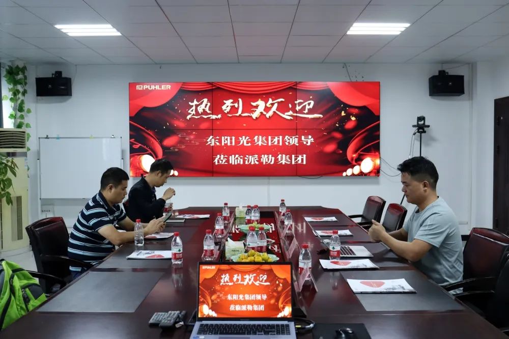 東陽(yáng)光公司領(lǐng)導(dǎo)一行首先參觀(guān)了派勒集團(tuán)極具科技感的未來(lái)展廳。在觀(guān)看了企業(yè)介紹、企業(yè)榮譽(yù)、工業(yè)4.0等模塊內(nèi)容之后,雷志才總經(jīng)理向?qū)Ψ街攸c(diǎn)介紹了派勒集團(tuán)成長(zhǎng)歷史、研發(fā)工藝、專(zhuān)利榮譽(yù)以及上市計(jì)劃等事項(xiàng)。