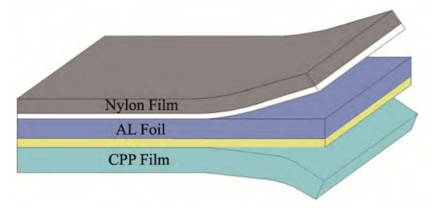 鋁塑膜軟包裝可分為三層,層與層之間通過(guò)粘合劑進(jìn)行結(jié)合。