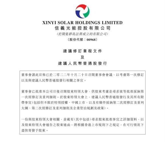 全球最大的光伏玻璃制造商信義光能近日宣布,將發(fā)行不少于9.89億股股份于深交所上市(目前尚在籌備階段)。該公司稱,在兩個資本市場中估值較高的一個市場籌集資金,可減少對股東之攤薄效應。公司表示,我國政府對可持續(xù)發(fā)展推行的“碳達峰、碳中和”策略,讓光伏玻璃行業(yè)得以快速增長及擴張。公司認為公司的業(yè)務目標與這些政策舉措相符。通過A股上市,公司的內(nèi)在價值可擴至最大,估值也可與其他在深圳創(chuàng)業(yè)板上市的太陽能公司進行比較及評估。深交所上市公司的身份也讓信義光能可以更直接參與可再生能源的國家策略項目,并擴展國內(nèi)產(chǎn)能及企業(yè)形象。