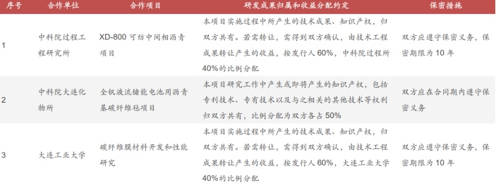 截至2022年8月,信德新材共取得74項專利,其中5項專利為發明專利,69項專利為實用新型專利。公司研發投入持續增長,與多所高校建立長期合作關系。與中科院、大連化物所等科研機構進行聯合研發,開展了XD-800可紡中間相瀝青、全釩液流儲能電池碳氈電極、碳纖維膜材料等應用研發,致力于將公司打造成為行業領先、品類豐富的碳基新型材料供應商。