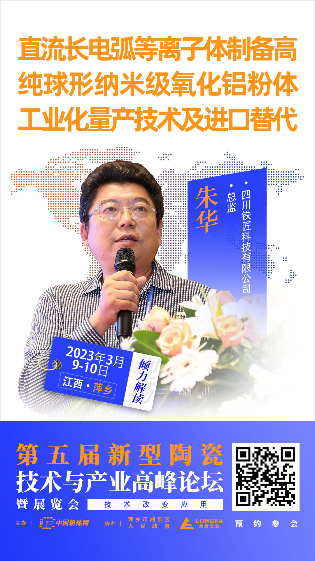 2023年3月9-10日,中國粉體網將在江西萍鄉舉辦“2022第五屆新型陶瓷技術與產業高峰論壇”。為了更全面的讓大家了解等離子體法制備球形氧化鋁粉體技術及實際應用,我們邀請到了一位技術大咖前來講解——四川鐵匠科技有限公司朱華總監作題為《直流長電弧高溫熱等離子體束批量制備高純球形納米級氧化鋁粉體技術及應用》的報告。