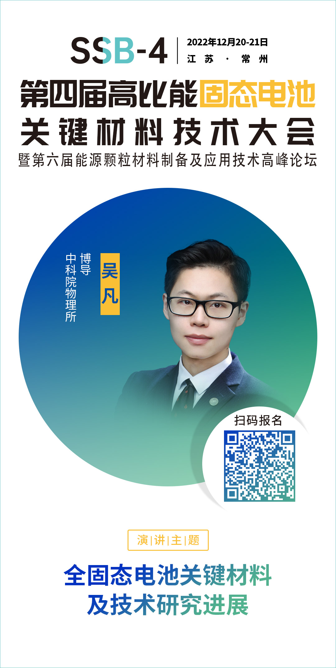 在此背景下,中國粉體網將于12月20-21日在常州舉辦第四屆高比能固態電池關鍵材料技術大會,為致力于固態電池技術開發的企業,科研院校,以及電動車、儲能、特種應用等終端企業提供信息交流的平臺,開展產、學、研合作,共同推動行業發展。屆時,中科院物理所博士生導師、中國科學院大學教授吳凡將作題為《全固態電池關鍵材料及技術研究進展》的報告。報告將重點介紹硫化物全固態電池的關鍵基礎科學問題和應用化開發難題,探討其團隊在此領域的研發進展。