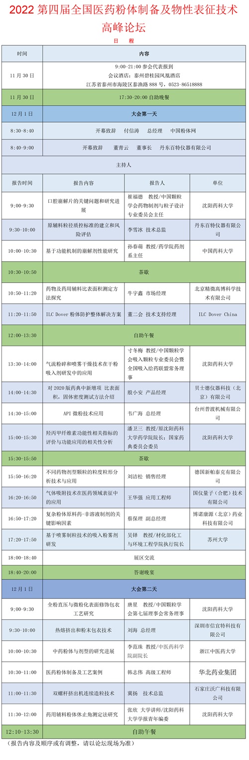 制藥企業管理、研發、生產技術負責人、科研機構、院校課題組負責人、醫藥粉體設備企業技術負責人、粉體物性表征相關企業技術負責人、原料藥及輔料等產業鏈企業負責人……