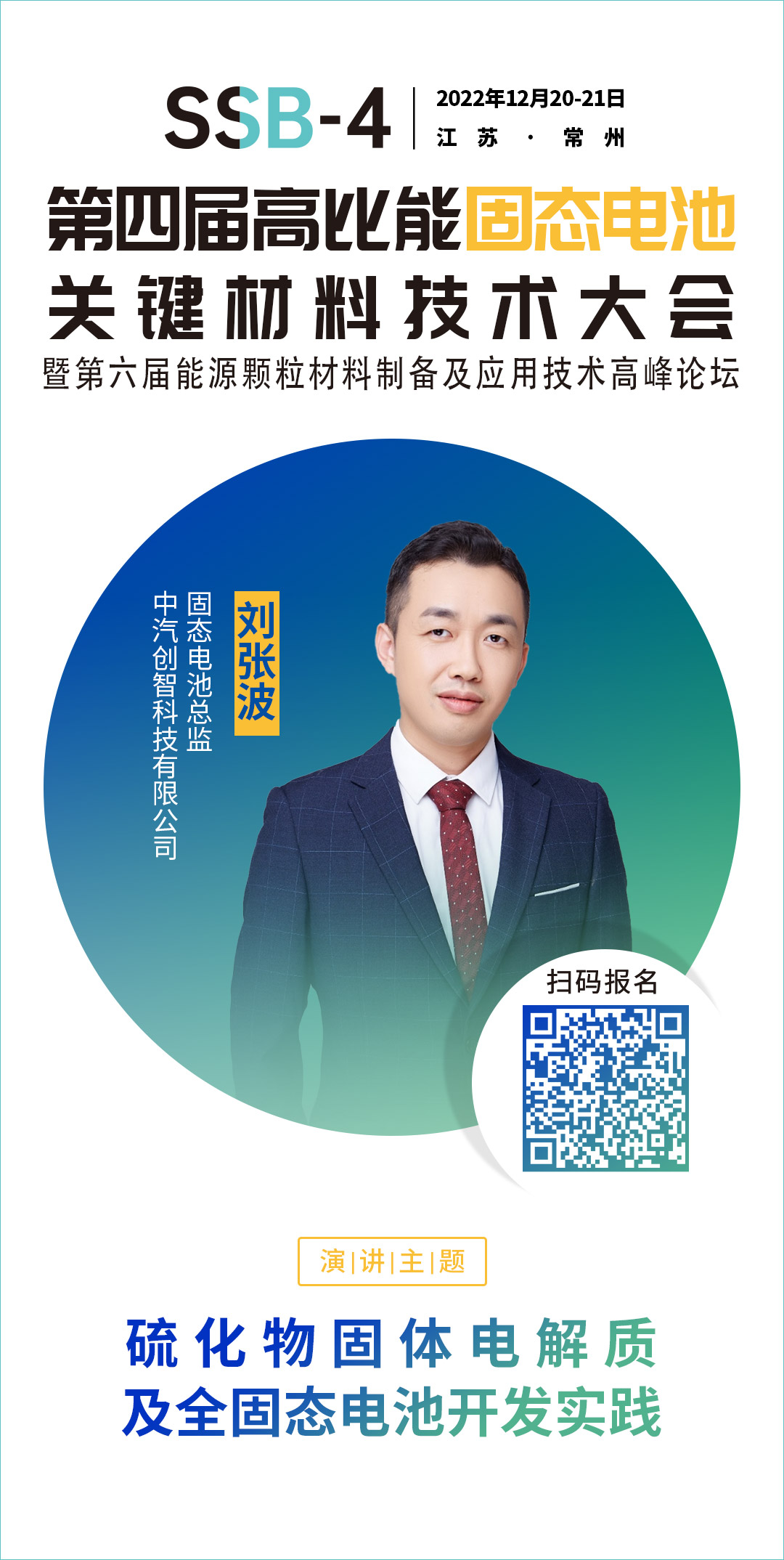 針對固態電池相關的技術、材料、市場及產業等方面的問題,中國粉體網將于12月20-21日在常州舉辦第四屆高比能固態電池關鍵材料技術大會,為致力于固態電池技術開發的企業,科研院校,以及電動車、儲能、特種應用等終端企業提供信息交流的平臺,開展產、學、研合作,共同推動行業發展。屆時,中汽創智科技有限公司固態電池總監劉張波先生將作題為《硫化物固體電解質及全固態電池開發實踐》的報告。報告將結合中汽創智的開發實踐,探討硫化物固體電解質以及基于該體系的全固態電池開發中的各項科學和技術問題,并做相關進展和經驗分享。