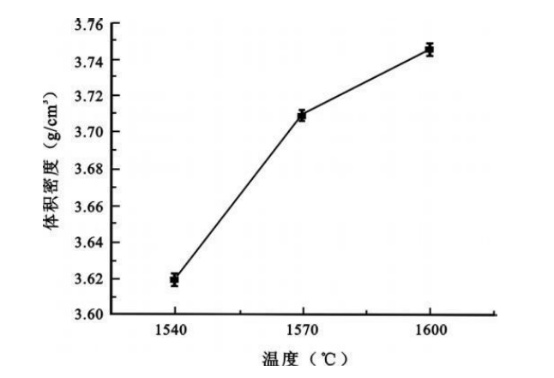 (2)燒結(jié)溫度對氧化鋁陶瓷的體積密度、吸水率和氣孔率均有很大影響,溫度越高,體積密度越大,吸水率和氣孔率越小。