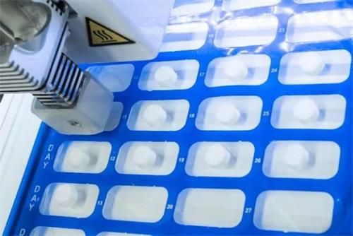 直接在泡罩包裝中形成藥片有兩個(gè)好處,一個(gè)是能夠消除材料浪費(fèi)并產(chǎn)生 99% 的產(chǎn)量。另一個(gè)好處是靈活性,每個(gè)單獨(dú)的泡罩腔都可以有定制的配方和藥片體積和尺寸。