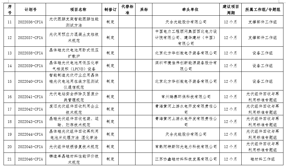 附件:2022年第三批光伏協(xié)會標(biāo)準(zhǔn)制修訂計劃項目匯總表