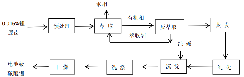 萃取提鋰工藝在酸性條件下鋰萃取劑能夠同時萃取硼和鋰。因此萃取鋰之前須用硼萃取劑將硼萃取降低到較低濃度水平,再進行萃取鋰實現鎂鋰分離,才能得到高純度氯化鋰。但工藝過程中采用強酸反萃取得氯化鋰溶液,需要大量氫氧化鈉中和,中和后反萃液生產碳酸鋰時,氯化鈉含量高對電池級碳酸鋰品質會有影響。萃取工藝使用高濃度鹽酸對設備、廠房腐蝕嚴重,生產環境差,反萃液和萃余液中溶解了大量小分子有機物對生態環境不友好,在職業衛生和環保日益重視的情況,容易引起安全、環保事件。