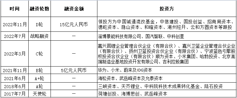 此后,衛(wèi)藍新能源在資本市場一路高歌。2021年6月,完成A+輪融資,投資方包括海松資本、武岳峰資本及允泰資本。2021年11月,完成B輪融資,投資方包括華為、小米、蔚來及IDG資本。2022年3月,完成C輪融資,投資方包括嘉興固鋰企業(yè)管理合伙企業(yè)(有限合伙)、嘉興衛(wèi)藍企業(yè)管理合伙企業(yè)(有限合伙)、揚州衛(wèi)藍投資合伙企業(yè)(有限合伙)、寧波藍色引擎股權(quán)投資合伙企業(yè)(有限合伙)、順為資本、小米集團、哈勃投資、北京高端制造業(yè)基地投資開發(fā)有限公司、吉利控股集團。2022年7月,衛(wèi)藍新能源再次引入戰(zhàn)略投資,投資方包括淄博景能科技有限公司、國汽智聯(lián)、中科創(chuàng)星。2022年11月,衛(wèi)藍新能源完成D輪融資,領(lǐng)投方為中國誠通混改基金,中信建投、國投創(chuàng)益、招商局資本、德屹資本、隱山資本、和暄資本、湖州經(jīng)開、云和方圓資本等跟投。