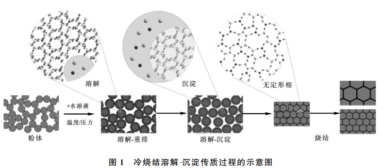 溶解-沉淀過程中形成的沉淀物可能是結晶相,也可能是非結晶相。非結晶相包覆在晶粒的周圍從而抑制晶粒的進一步生長,因此冷燒結技術在一定條件下可以實現納米陶瓷或者亞微米陶瓷的致密化燒結。