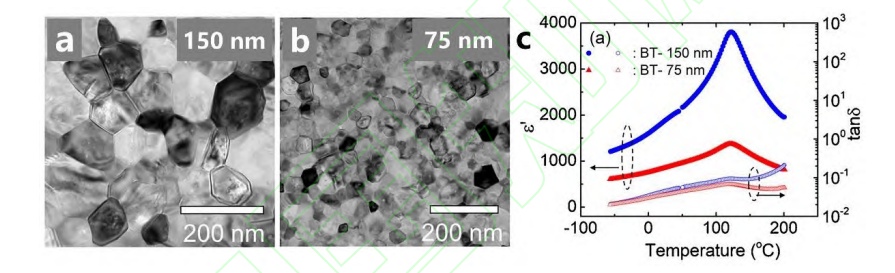 Guo等采用冷燒結技術180℃制備了BaTiO3陶瓷,然后經過900℃后熱處理,得到的BaTiO3陶瓷晶粒尺寸為亞微米級,但介電性能較差。