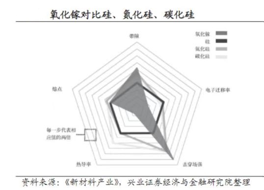 公開資料顯示,氧化鎵擁有超寬帶隙(4.2-4.9eV)、超高臨界擊穿場強(8MV/cm)、超強透明導電性等優異物理性能,導通特性約為碳化硅的10倍,理論擊穿場強約為碳化硅3倍多,可以有效降低新能源汽車、軌道交通、可再生能源發電等領域在能源方面的消耗。