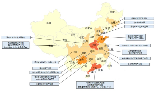 (四)產(chǎn)業(yè)格局實現(xiàn)從零散分布到重點聚集的演變。十年來,我國華南、華中、西北等地區(qū)部分省市依靠自身良好的經(jīng)濟發(fā)展優(yōu)勢、區(qū)位條件和工業(yè)基礎(chǔ),通過有效匯聚產(chǎn)業(yè)資源,提高資源利用效率,實現(xiàn)了增材制造產(chǎn)業(yè)從零散狀、碎片化到成鏈條、聚集化發(fā)展的演變。2013年,全國首個3D打印產(chǎn)業(yè)園在陜西渭南建成,隨后,廣州3D打印技術(shù)產(chǎn)業(yè)園、安徽春谷3D打印智能裝備產(chǎn)業(yè)園等20余個增材制造全產(chǎn)業(yè)鏈及相關(guān)配套服務(wù)的產(chǎn)業(yè)聚集地、產(chǎn)業(yè)園區(qū)在各地陸續(xù)涌現(xiàn),初步形成以珠三角地區(qū)、長三角地區(qū)為核心,京津冀地區(qū)和陜西、安徽等中、西部地區(qū)為紐帶的產(chǎn)業(yè)空間發(fā)展格局。