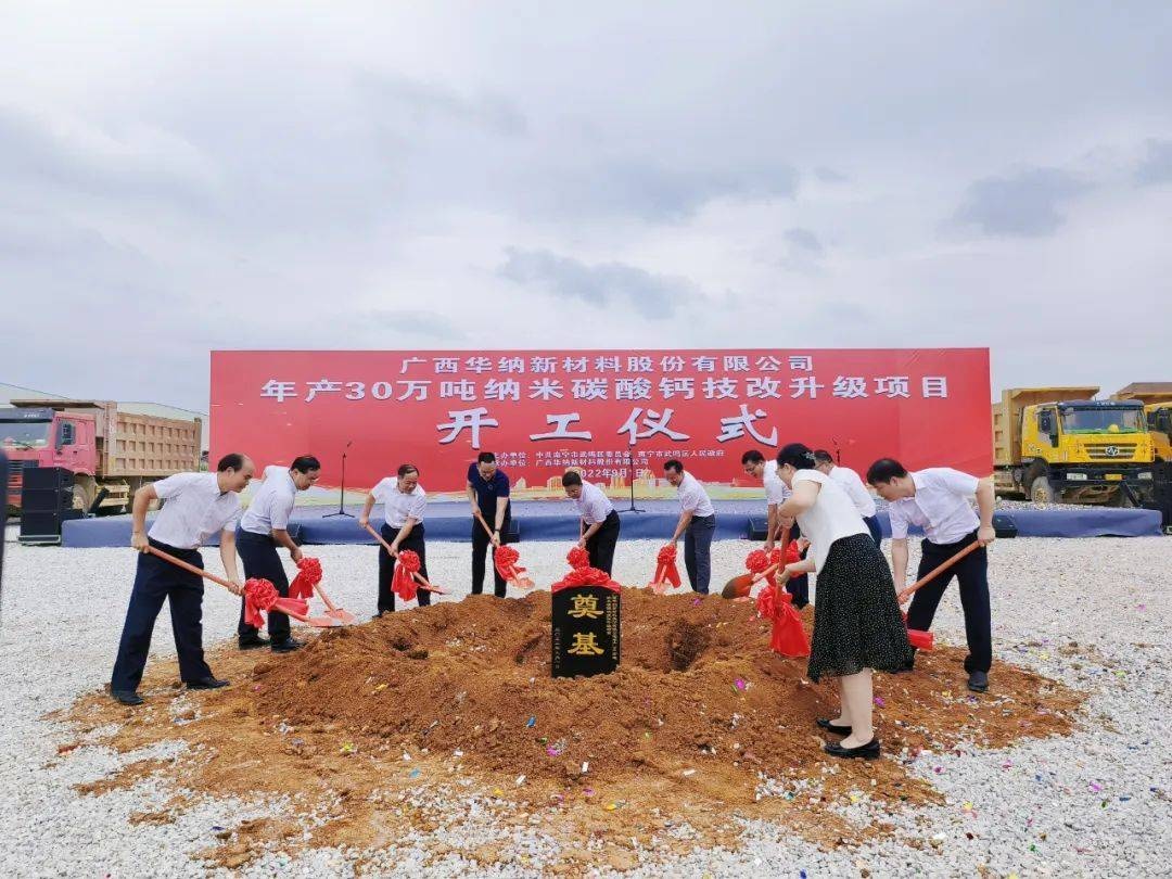 9月1日,“廣西華納新材料股份有限公司年產30萬噸納米碳酸鈣技改升級項目開工儀式”在廣西南寧市武鳴區甘圩鎮武鳴新材料產業園隆重舉行。