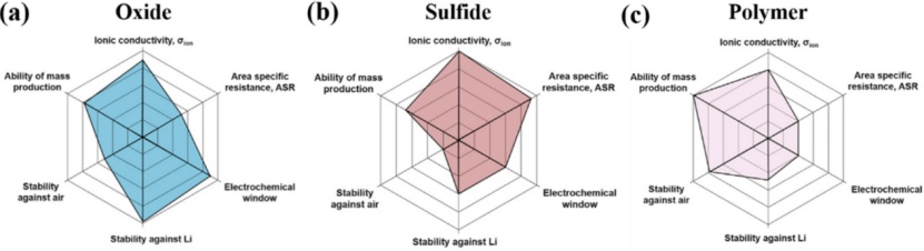 硅基負極和固態電解質的使用將使鋰離子電池的能量密度達到一個新的水平。常見的與硅匹配的固態電解質可分為氧化物電解質、硫化物電解質和聚合物電解質(圖7)。