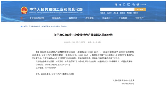 中國粉體網訊 近日,工業和信息化部發布2022年度中小企業特色產業集群公示名單。