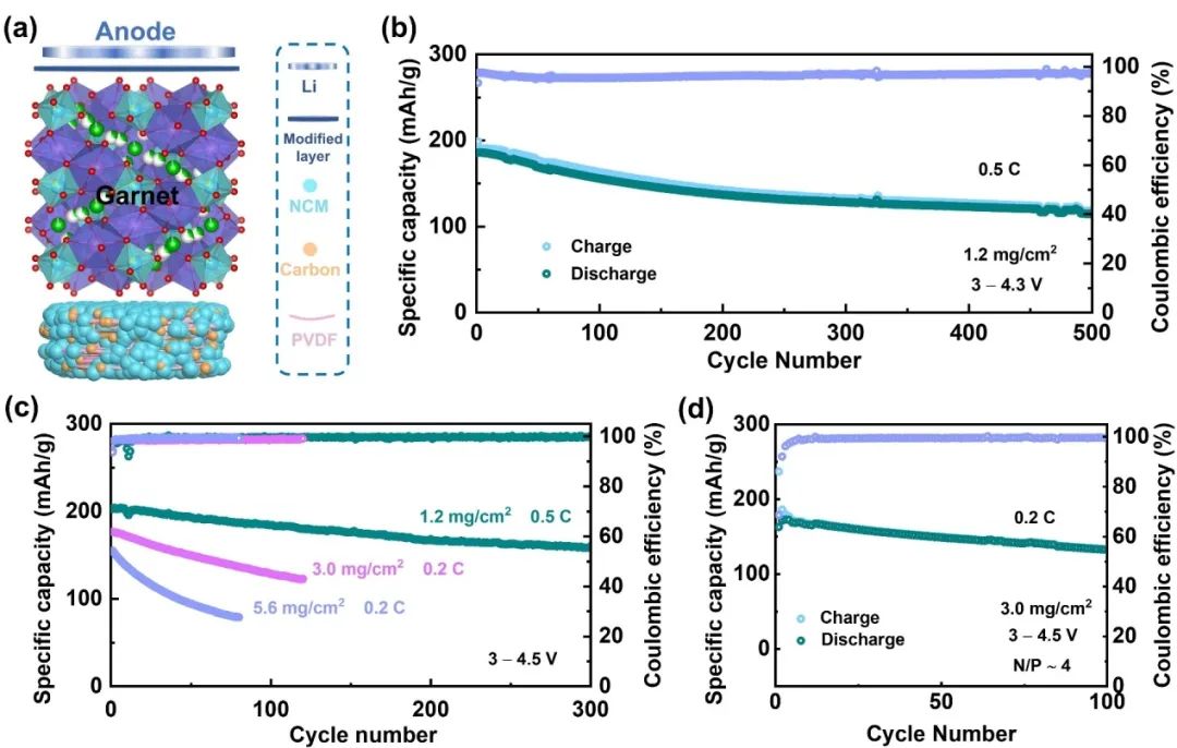 鋰金屬負極理論容量高、反應電位低,因此鋰金屬電池具有更高的能量密度和更廣泛的正極材料選擇,然而有機電解液的易燃性和鋰枝晶的不可控生長使得鋰金屬電池存在一定安全隱患。采用固態電解質取代電解液可以在根本上提高電池的安全性和穩定性。其中摻雜的石榴石型固態電解質Li7La3Zr2O12(LLZO)具有室溫離子電導率高、電化學窗口寬、對鋰金屬穩定等優勢,是氧系陶瓷電解質的首選。然而LLZO面臨著表面易形成Li2CO3鈍化層、與鋰金屬界面接觸差等問題,導致負極-電解質(Li/LLZO)界面存在大的界面阻抗,嚴重阻礙了鋰離子的界面傳輸,而且不均勻的界面接觸易引起鋰金屬的局部沉積,導致鋰枝晶在陶瓷晶界處的生長,這些限制了固態鋰金屬電池的發展。因此,實現Li/LLZO界面的鈍化層消除/轉換和親鋰潤濕改性具有重要意義。