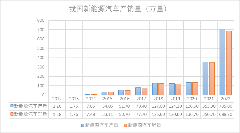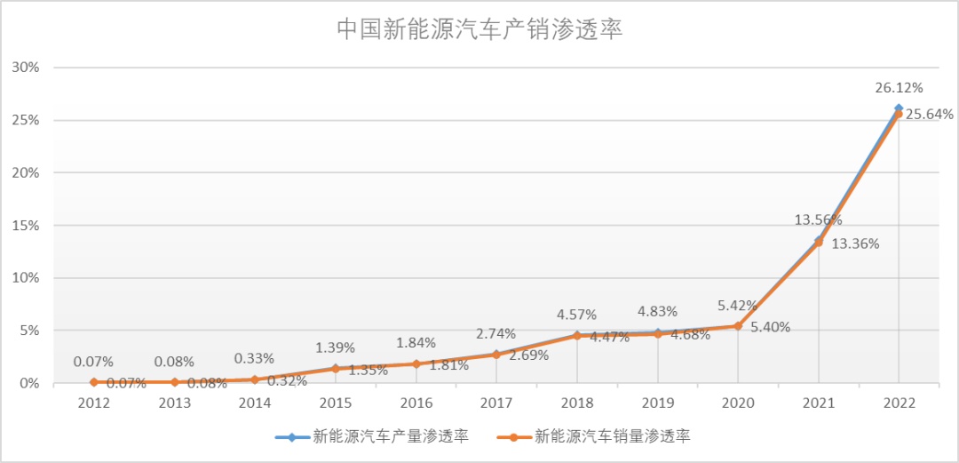 新能源汽車是一種替代需求,其產(chǎn)銷從2021年開始經(jīng)歷了連續(xù)兩年的飛速發(fā)展,當(dāng)前滲透率已經(jīng)超過30%,如果按照前兩年的節(jié)奏,滲透率平均提升10pct,對應(yīng)大概280萬輛,也就是2023年產(chǎn)銷能夠達到將近1000萬輛(如果按照今年底的滲透率,提升大概7個百分點,對應(yīng)增加200萬輛)。
