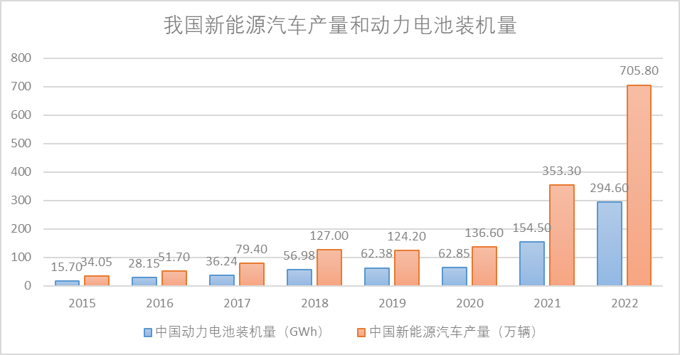 2022年我國動力電池的產(chǎn)量為545.9GWh,同比增長148.5%。三元電池產(chǎn)量212.5GWh,占總產(chǎn)量38.9%,同比增長126.4%;磷酸鐵鋰電池產(chǎn)量332.4GWh,占總產(chǎn)量60.9%,同比增長165.1%。