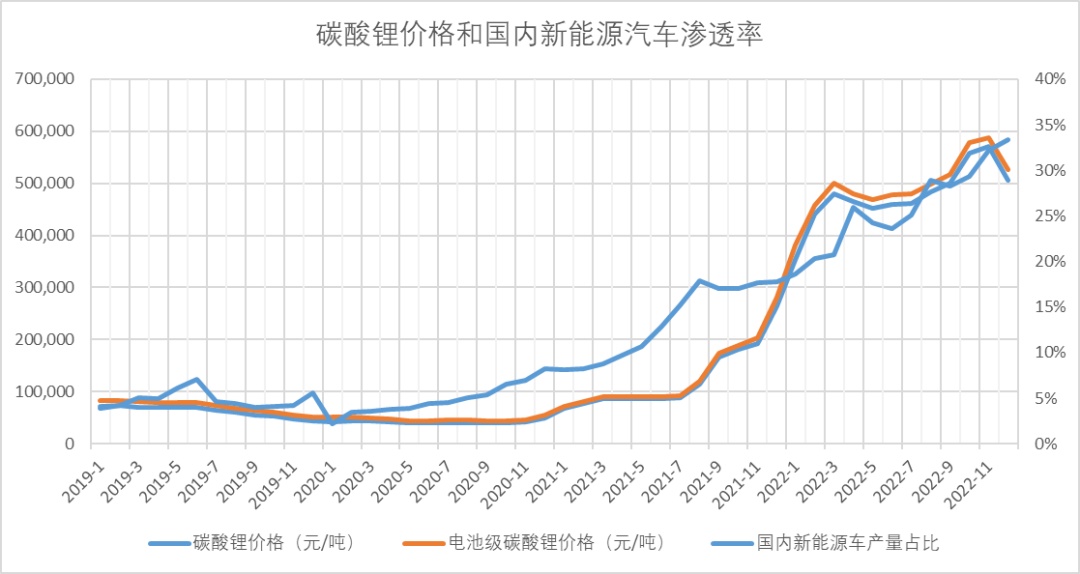 三、新能源車滲透率和碳酸鋰價格