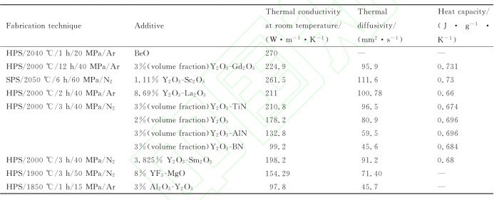 高導熱SiC陶瓷的主要制備工藝有熱壓燒結、放電等離子燒結、無壓燒結、重結晶燒結和反應燒結等,不同制備工藝下SiC陶瓷的熱導率有一定的差異。