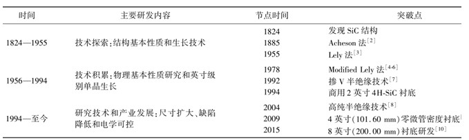 1991年,美國Cree公司用改進的Lely法生產出6H-SiC晶片,并于1994年制備出4H-SiC晶片。1997年實現50mm(2英寸)6H-SiC單晶的市場化,2000年實現100mm(4英寸)6H-SiC單晶的市場化。2010年,Cree展示高品質的150mm碳化硅基片。