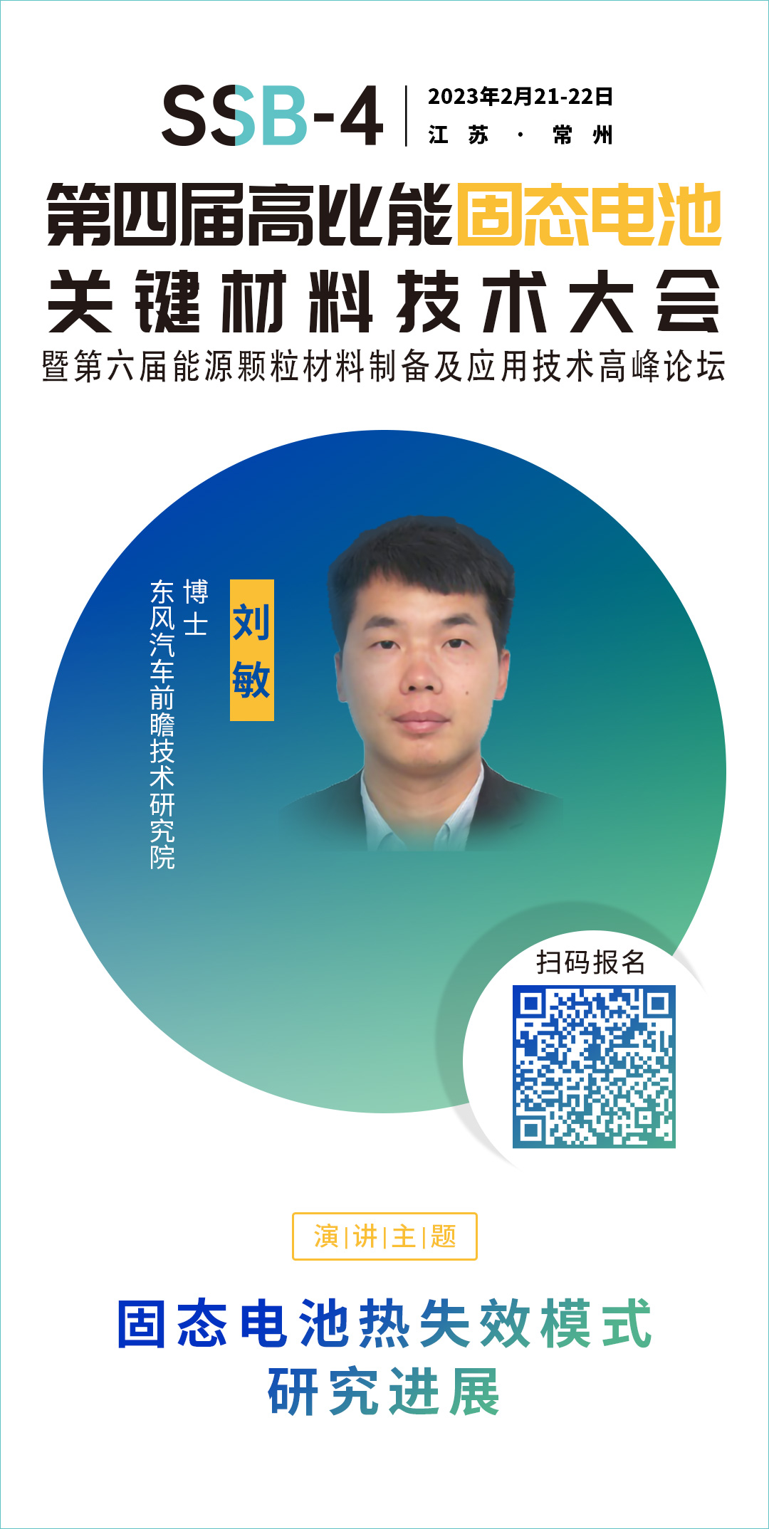 針對固態(tài)電池相關(guān)的技術(shù)、材料、市場及產(chǎn)業(yè)等方面的問題,中國粉體網(wǎng)將于2023年2月21-22日在常州舉辦第四屆高比能固態(tài)電池關(guān)鍵材料技術(shù)大會。為致力于固態(tài)電池技術(shù)開發(fā)的企業(yè),科研院校,以及電動(dòng)車、儲能、特種應(yīng)用等終端企業(yè)提供信息交流的平臺,開展產(chǎn)、學(xué)、研合作,共同推動(dòng)行業(yè)發(fā)展。屆時(shí),東風(fēng)汽車前瞻技術(shù)研究院劉敏博士將作題為《固態(tài)電池?zé)崾J窖芯窟M(jìn)展》的報(bào)告。