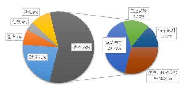 作為精細的無機化工產品,鈦白粉廣泛用在涂料、塑料、造紙、化纖、油墨、橡膠、食品、化妝品等領域,其應用領域既要滿足材料性能的需要,又要滿足光學性能帶給人的視覺與應用需要。由于鈦白粉在許多方面都與國家的經濟有著密切的關系,因此被稱為“經濟發展的晴雨表”。隨著科技的發展,鈦白粉的消費逐漸拓展到新能源、高端裝備、環保、醫用等領域。