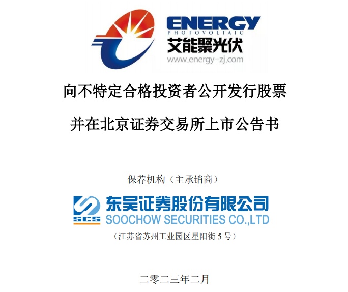 中國粉體網訊 艾能聚(834770)公告,2月28日,公司將在北京證券交易所上市。