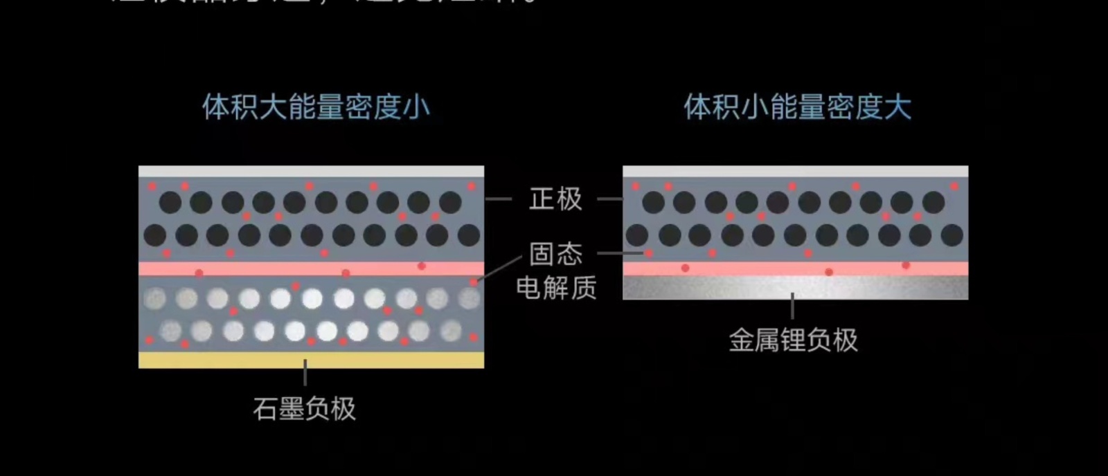 根據小米官方介紹,此次小米預研的固態電池第一點的突破便是能量密度突破1000Wh/L,主要原因便是采用了金屬鋰負極。金屬鋰一直以來都是最為理想的負極材料,其儲電能力是目前硅氧負極材料的2~3倍,而金屬鋰存在析鋰現象,只有固態電池的無機物隔膜才能阻止鋰枝晶穿透,避免短路。