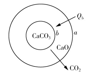 石灰石的煅燒過程是一個比較復雜的物理化學過程,其內(nèi)部分解反應分為5個步驟,如圖1所示,即:通過顆粒邊界層,由周圍介質(zhì)傳進分解所需熱量;熱量繼續(xù)以傳導方式在顆粒分界層(由表面?zhèn)髦练纸饷妫┫騼?nèi)傳導;顆粒內(nèi)層的分解反應;分解出的CO2通過CaO層向外擴散;顆粒表面的CO2向氣流的擴散。這5個分步驟實質(zhì)上是由顆粒的傳熱傳質(zhì)、化學反應和CO2的擴散3部分組成。可以推斷石灰石的顆粒大小和煅燒時間對傳熱傳質(zhì)和CO2的擴散有很大影響。