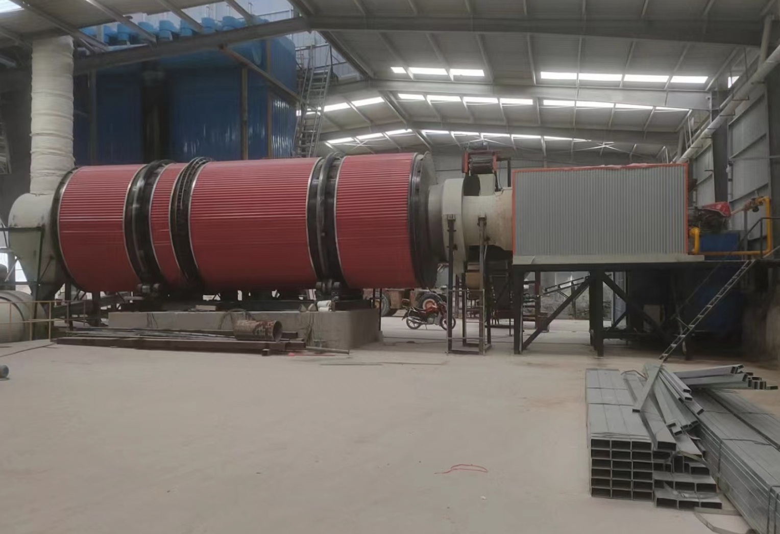 4.三筒烘干機比普通烘干機減少占地面積40%左右,土建投資降低50%左右。
