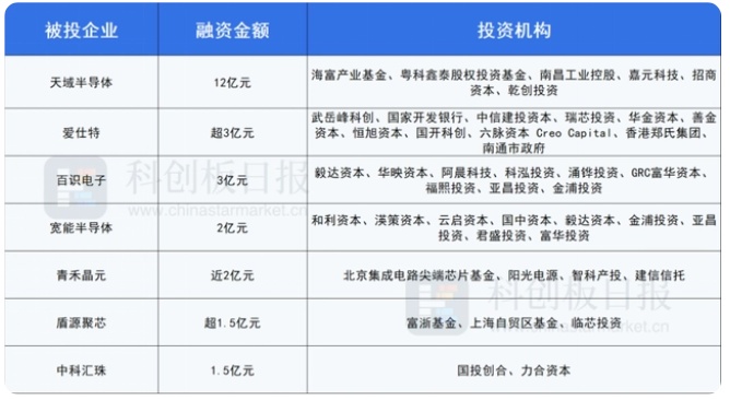 此外,百識電子、愛仕特亦獲得了3億元左右的大額融資。