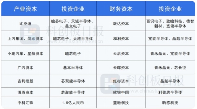 小鵬汽車與旗下風投平臺星航資本戰略投資了瞻芯電子;廣汽資本加碼了基本半導體;吉利控股與博原資本投資了芯聚能半導體。