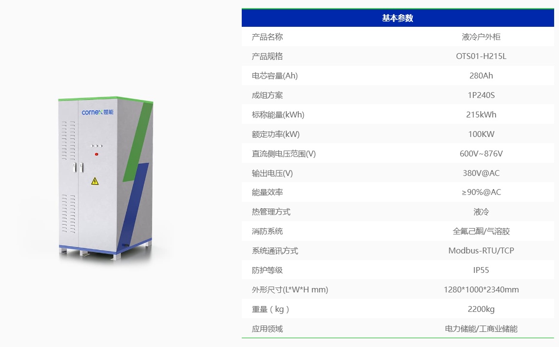 工商業儲能產品液冷戶外柜OTS01-H215L。