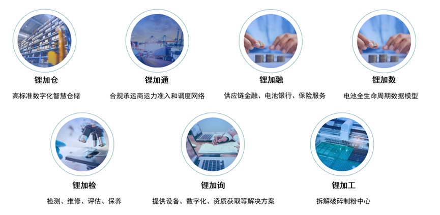 “鋰++”平臺秉承“一切皆共享、一切皆合作”的理念,圍繞動力電池的互聯網+產融聯盟模式創新探索,致力于成為國內規模最大、服務最好、數字化程度最高,且具公信力的鋰電池循環產業互聯網平臺,實現對鋰電池循環產業鏈的需求、供給、服務、平臺的四方共贏。“鋰++”充分整合產業、金融、數智等要素,緊緊圍繞“匯聚、互動、交易、服務”的經營主線,奠定平臺的價值基礎。未來平臺在構建鋰電循環產業的全品類交易市場的同時,集成推出六大服務體系,包括“鋰+倉”、“鋰+通”、“鋰+檢”、“鋰+融”、“鋰+工”、“鋰+詢”。